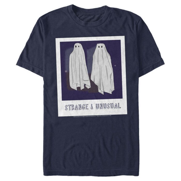 It's Showtime! Now you can join Adam and Barbara in the netherworld with this Beetlejuice Strange and Unusual Ghost Photo Men's T-Shirt style! This tee features a distressed graphic of a photo with two white sheets ghosts hanging from the air. Celebrate one of the best after-life-themed comedy horror films and don't wait in the house for the next one hundred and twenty-five years to get this and more apparel from this movie!