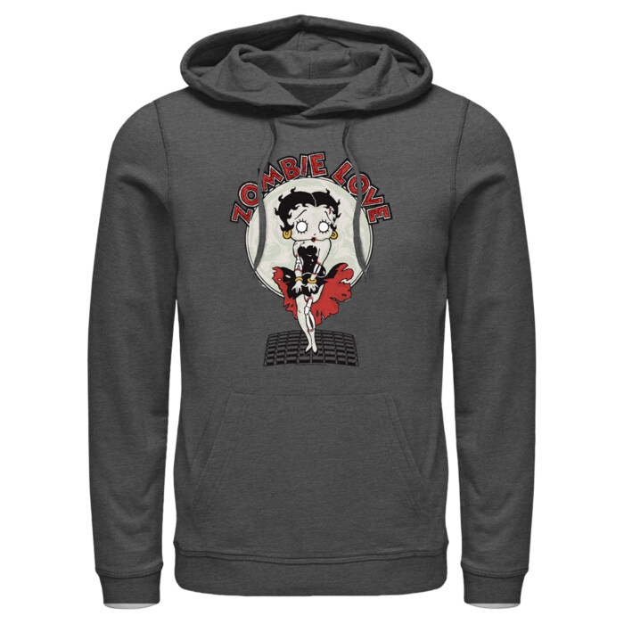 Boop-oop-a-doop! Celebrate your love for the iconic 1930s animated character Betty Boop with fun new officially licensed apparel for the whole family! This Men's Valentine's Day Zombie Love Dress Graphic Pullover Hoodie features a graphic of Betty Boop as a zombie standing over a subway grate as her black dress blows around her, recreating one of Hollywood's most iconic moments. Get some Betty Boop styles today and create some memories with America's first bombshell!