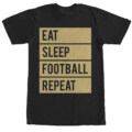 It's that beautiful time of year when the leaves change, there's a chill in the air and...it's finally football season again! Celebrate your love of football with the Chin Up Eat Sleep Football Repeat Black T-Shirt. This awesome black shirt reads "Eat Sleep Football Repeat" in block style lettering and is the perfect shirt for football game day!