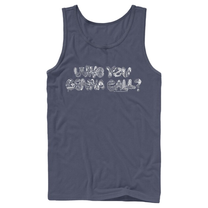 Don't worry if your shirt was slimed with ectoplasmic goo, because we're here to save the day with this awesome Men's Navy Ghostbusters Who You Gonna Call Collage Tank Top! Featuring one of the most famous quotes from the iconic Ghostbusters movie with a cool design on the inside of the writing, you are sure to get the attention of all the Ghostbusters fans this season! Grab this new graphic tee today and always remember who you're gonna call!