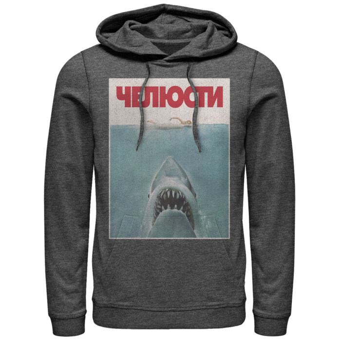 Men's Jaws Russian Title Shark Poster Adult Pull Over Hoodie | Fendory