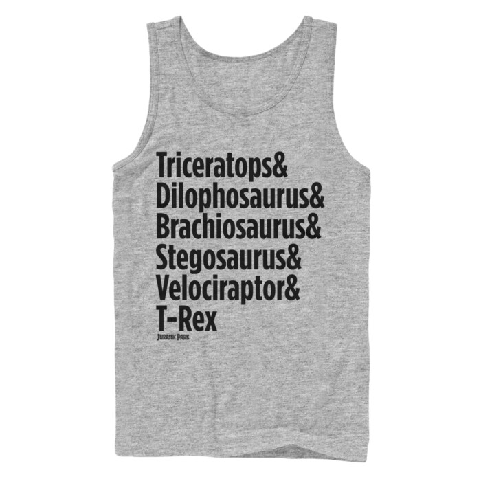 View all Jurassic World Tank Top Collection and more same products Men's Jurassic Park Dr. Malcolm Chaos Theorist Adult Tank Top, Men's Jurassic Park Ranger Logo Badge Adult Tank Top, Men's Jurassic World Technical Difficulties Adult Tank Top