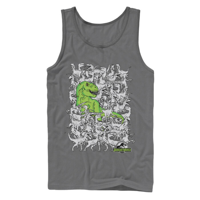 View all Jurassic World Tank Top Collection and more same products Men's Jurassic World: Fallen Kingdom Dinosaur Battle Adult Tank Top, Men's Jurassic World Logo Claw Marks Adult Tank Top, Men's Jurassic World Mosasaurus Show Adult Tank Top