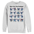 Ohana means family, and family means no tee gets left behind! Find the perfect style for your family with this new Men's Disney Lilo & Stitch How Are You Feeling Graphic Crewneck Sweatshirt! This fun design features a graphic of Stitch and his different moods such as confident, starving, dizzy, angry, annoyed, musical, and super excited among others with the phrase "How are you feeling?" printed above in black. Celebrate a certain alien, otherwise known as Experiment 626 in style with new hilarious apparel for the whole family from the movie!