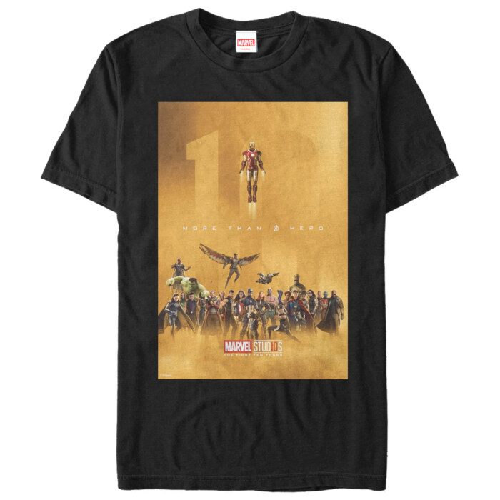 Every wear is an adventure as you flaunt your love for Marvel with this anniversary tee. Packed with all your favorite heroes, sporting this shirt is like being part of an elite crew, fighting for justice and honor. And doesn't the "Marvel Stud10s The First Ten Years" and "More than a Hero" imprinted make it feel like an exclusive badge of honor?