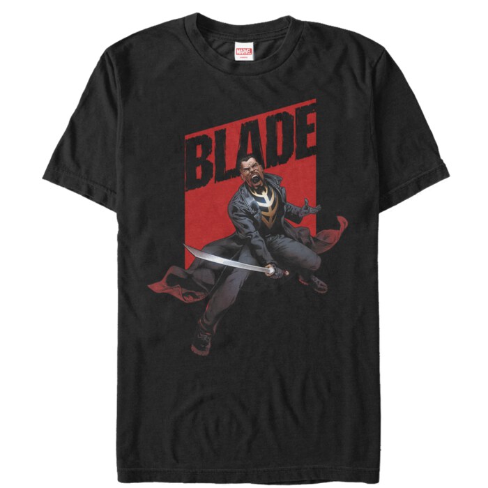 The t-shirt, designed for style and comfort, is perfect for comic conventions, movie marathons, or simply showcasing your love for Blade. Don't miss your chance to own this piece of Marvel history. Gear up with this black Blade shirt and brace yourself for the thrilling adventures that await!