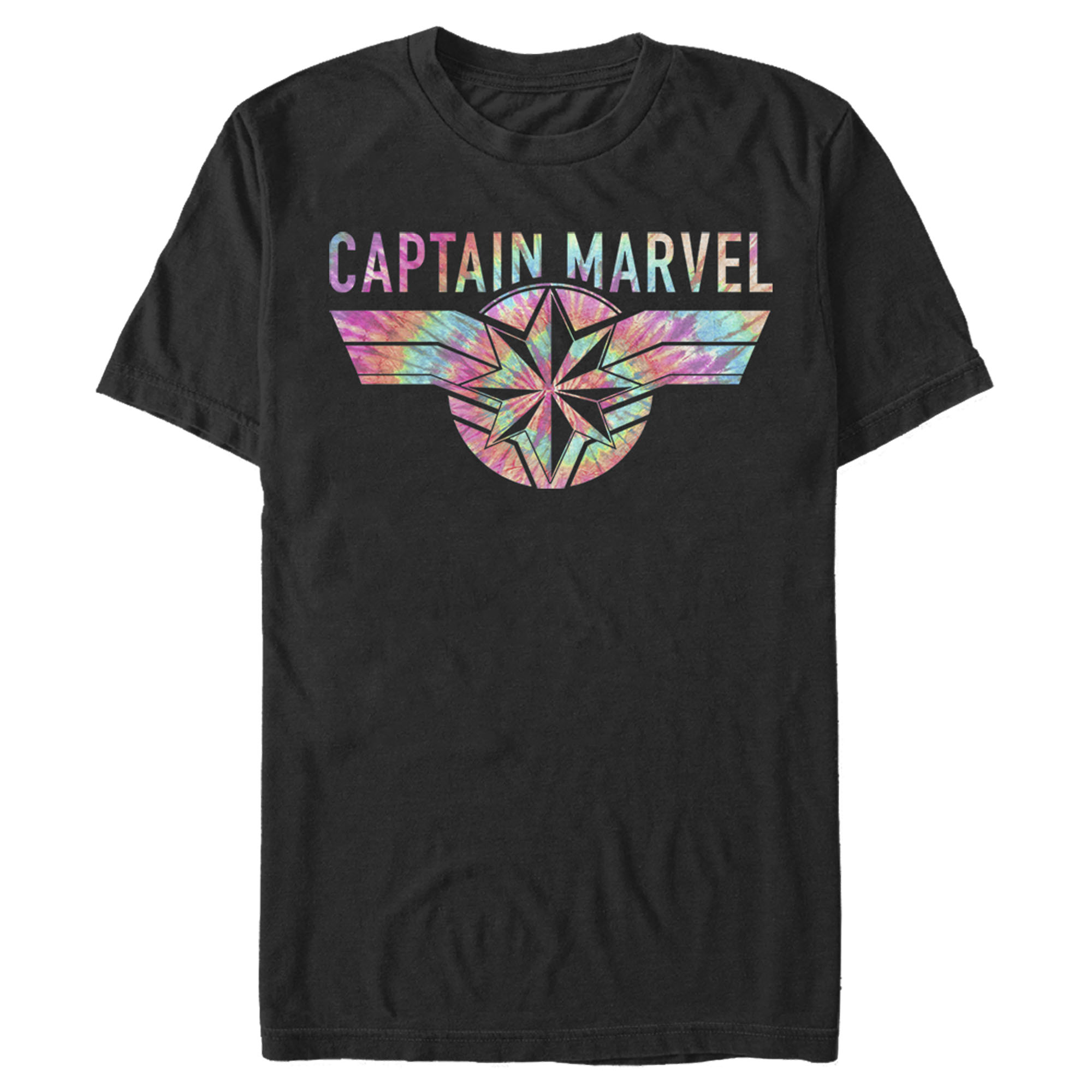 Men's Marvel Captain Marvel Logo Banner Tie Dye Colors Adult T-Shirt