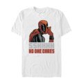 Embrace the unique humor and boundless charisma of your favorite Marvel anti-hero with the new Marvel Deadpool No One Cares Men's T-Shirt. This isn't just a tee, it's a signature statement of Deadpool's fearless sass and fearless individuality. Featuring a distressed, comic-style illustration, Deadpool takes center stage with his signature humor, exclaiming "Sshhhh No One Cares."