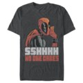 Imagine stepping out in this attention-grabbing tee, turning heads as people recognize the iconic Deadpool, rendered in a distressed cartoon style. He humorously hushes the world with a "Sshhhh No One Cares" plastered right across your tee, capturing his sassy spirit while infusing your look with a wicked sense of humor.