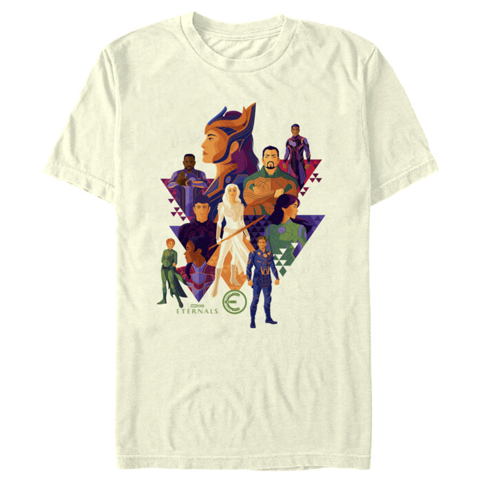 Revive timeless battles with our Official Eternals Triangle Portraits Men's Tee. This isn't just a shirt; it's a call to action – an invitation to join the immortals' fight for humanity, featuring vivid portraits of all ten Eternals, from Kro to Gilgamesh.