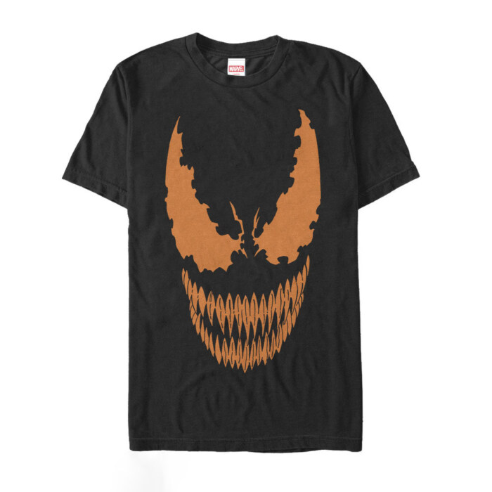 Picture yourself at a Halloween party, your Venom tee making heads turn and hearts race. Venom's terrifying smile, complete with his signature sharp fangs, snarls across the shirt, painted in an authentic Halloween orange, flawlessly capturing the thrill and chill of the season. His menacing image adds that frightful touch to this eerie ensemble.