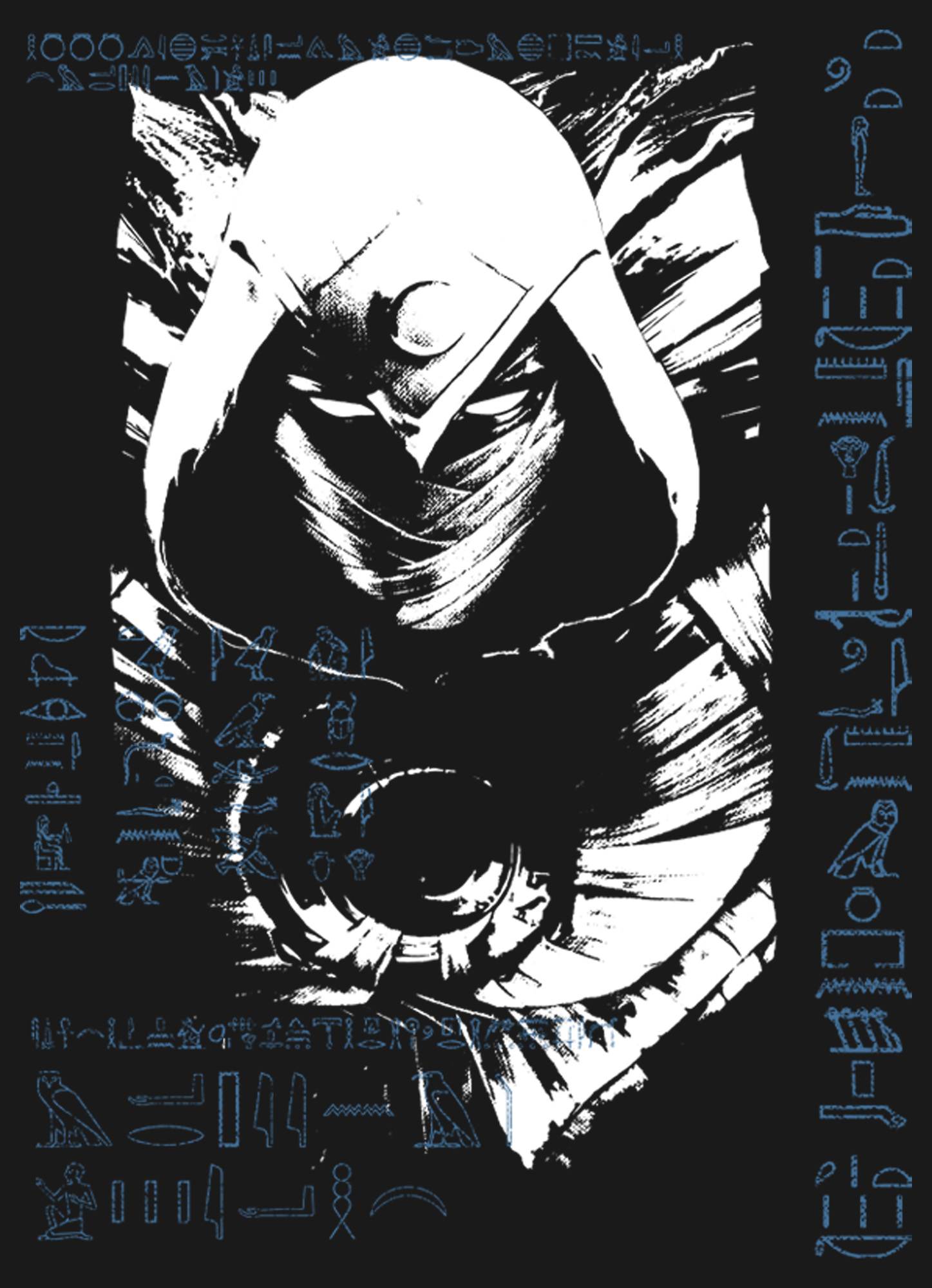 Men's Marvel: Moon Knight Blue Hieroglyphs Adult T-Shirt