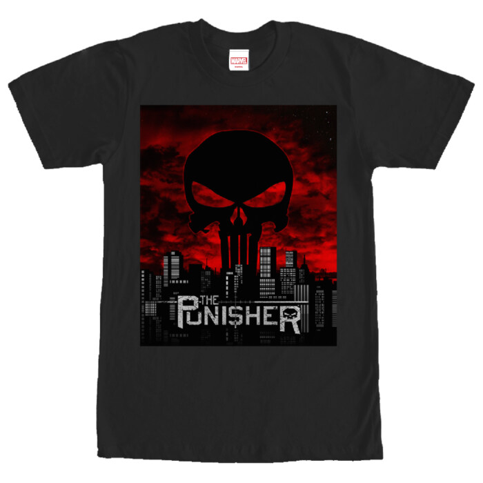 Crafted for comfort and style, this t-shirt is perfect for comic conventions, superhero movie premieres, or simply showcasing your inner Punisher in your daily life. Embrace the allure of this legendary Marvel antihero and make each day an expedition into the world of vigilantes and heroes. Go ahead, wear your Punisher pride on your sleeve with this Marvel Punisher Skyline Black T-shirt, and remind the world that justice never rests.