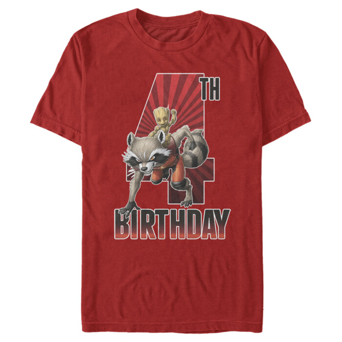 Making a statement has never been this adorable! With the officially licensed Rocket and Baby Groot 4th Birthday Men's Tee, you aren't just wearing a t-shirt, you're embracing the pure joy of a superhero celebration. See Rocket and Baby Groot, two of your favorite heroes, unite to sprinkle some fun and nostalgia on your birthday.