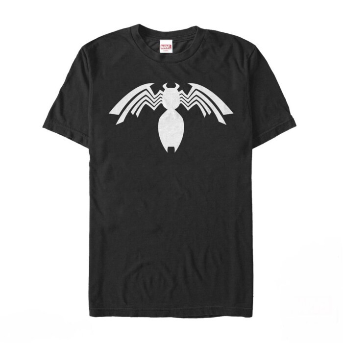Picture yourself at a Marvel movie premiere, donned in this fantastic t-shirt. Venom's iconic spider emblem takes center stage in striking white print against a black canvas, making you the center of every Marvel fans' attention. It's a captivating sight that mirrors the dramatic transmutation of Eddie into Venom.