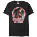 Step into the world of Marvel with our unique Marvel Scarlet Witch Circle Black T-Shirt. The shirt is not just another clothing item, it's a symbol of bravery and superhuman power, featuring the striking image of Wanda Maximoff in her iconic red cape — the epitome of superhero style.