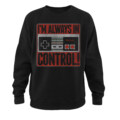 Hand over the controller? No way! You're content to keep on gaming in the Nintendo Always in Control Black Sweatshirt. This durable black sweatshirt reads "I'm always in control!" next a classic Nintendo Entertainment System controller.