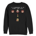 These days it may be a meme but the Nintendo Legend of Zelda Take This Men's Sweatshirt has its roots in classic video games. Sport the famous quote "It's dangerous to go alone! Take this" and a scene from the 1986 video game The Legend of Zelda, played on the NES.