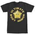 Bowser and his Koopa Troopa are no match for the Nintendo Mario Super Star Body Armor Black T-Shirt! "Ultimate Body Armor" is printed in bold letters around a Super Star on the front of this funny Nintendo t-shirt.