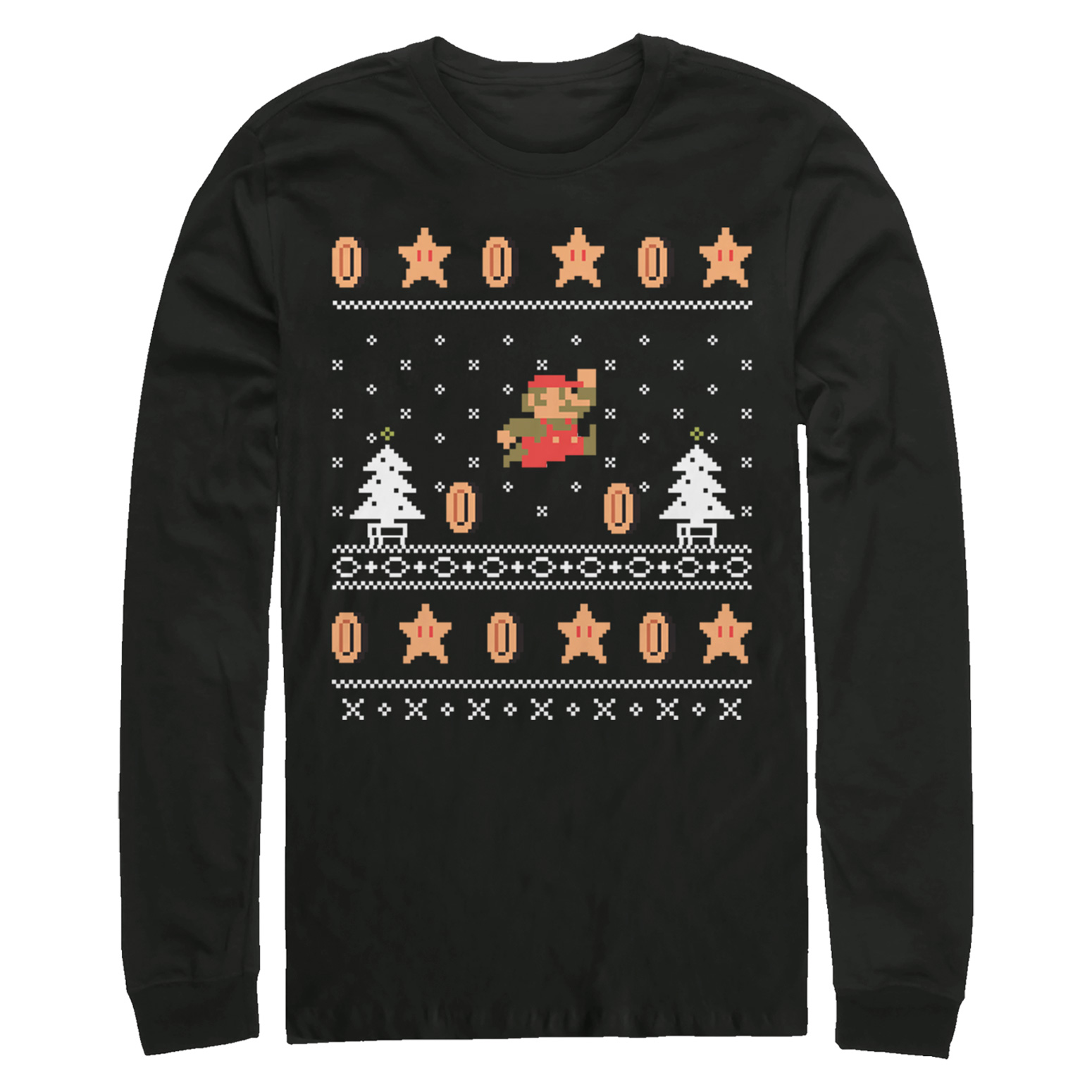 Men's Nintendo Ugly Christmas Mario Coin Adult Long Sleeve Shirt