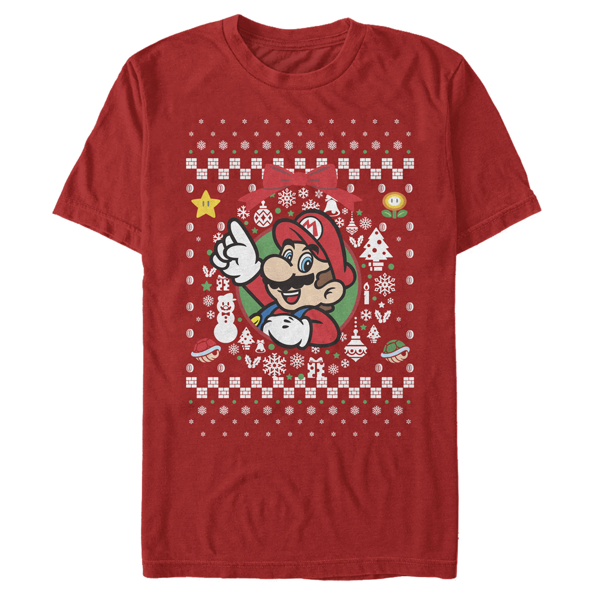 Men's Nintendo Ugly Christmas Mario Wreath Adult T-Shirt