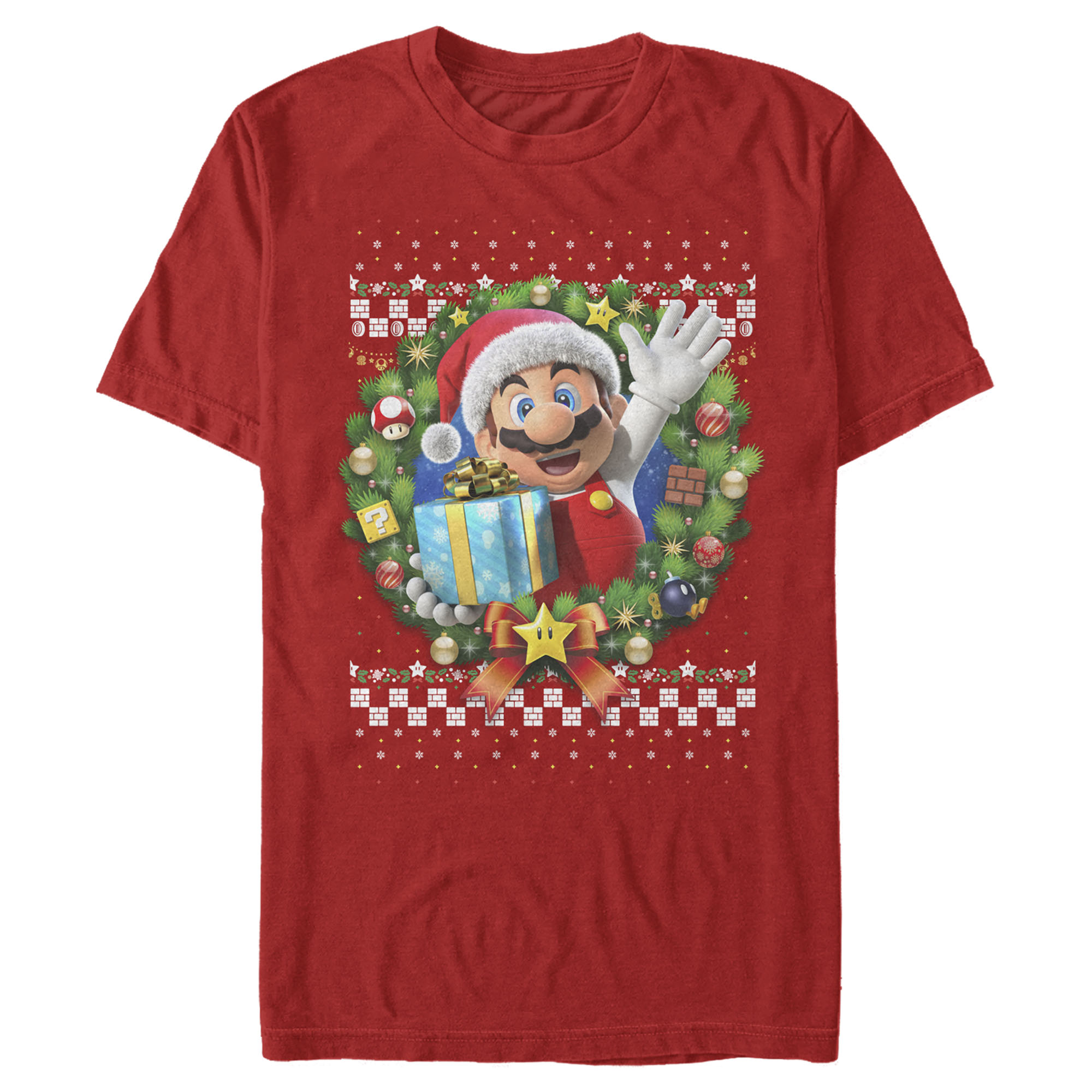 Men's Nintendo Ugly Christmas Mario Wreath Adult T-Shirt