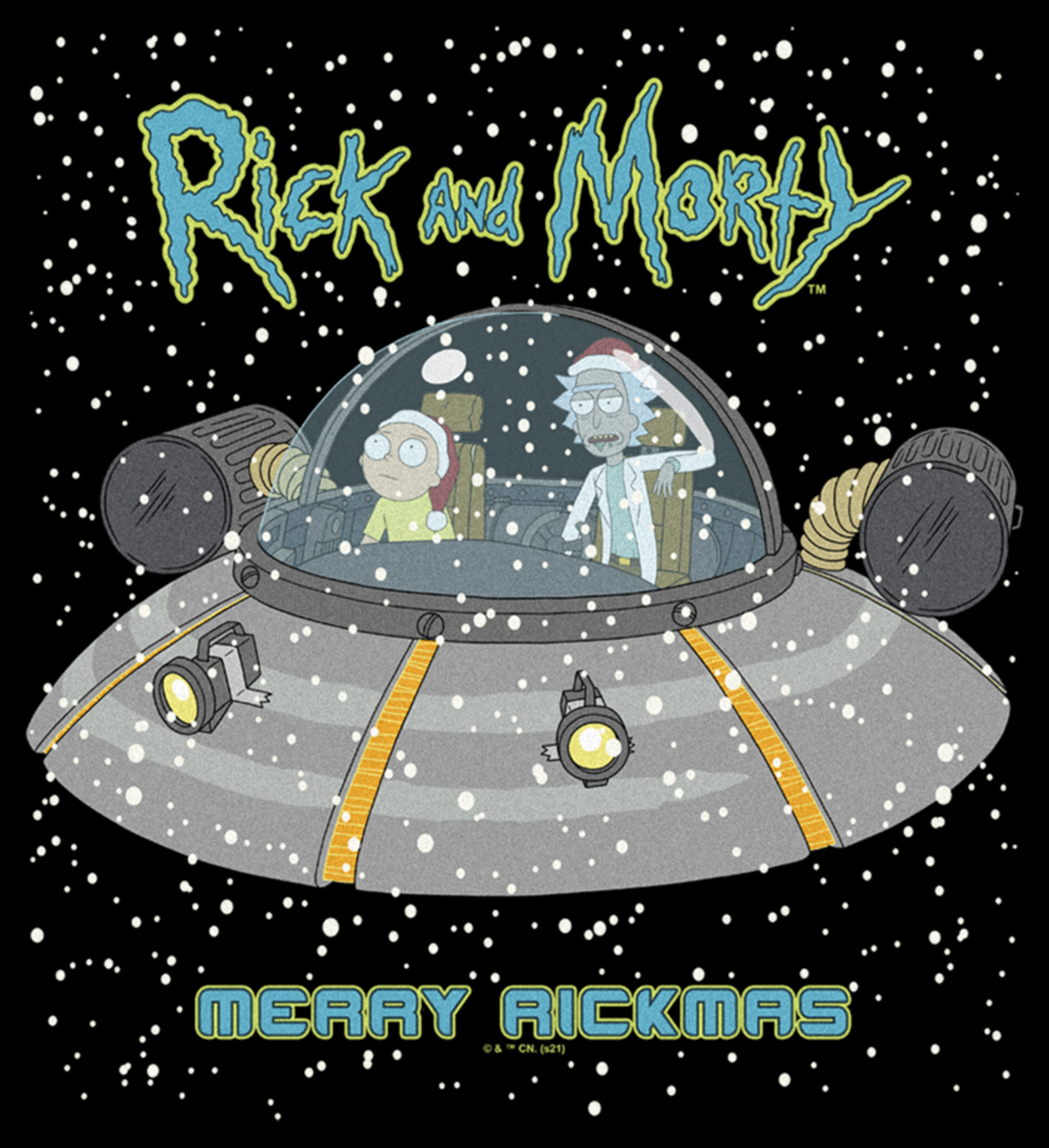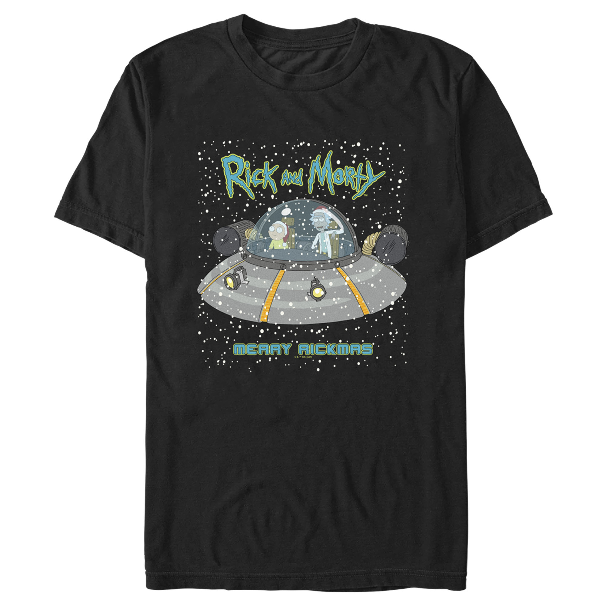 Men's Rick And Morty Snowing Spaceship Merry Rickmas Adult T-Shirt
