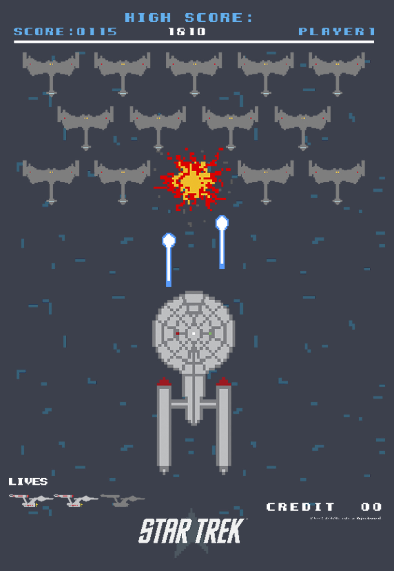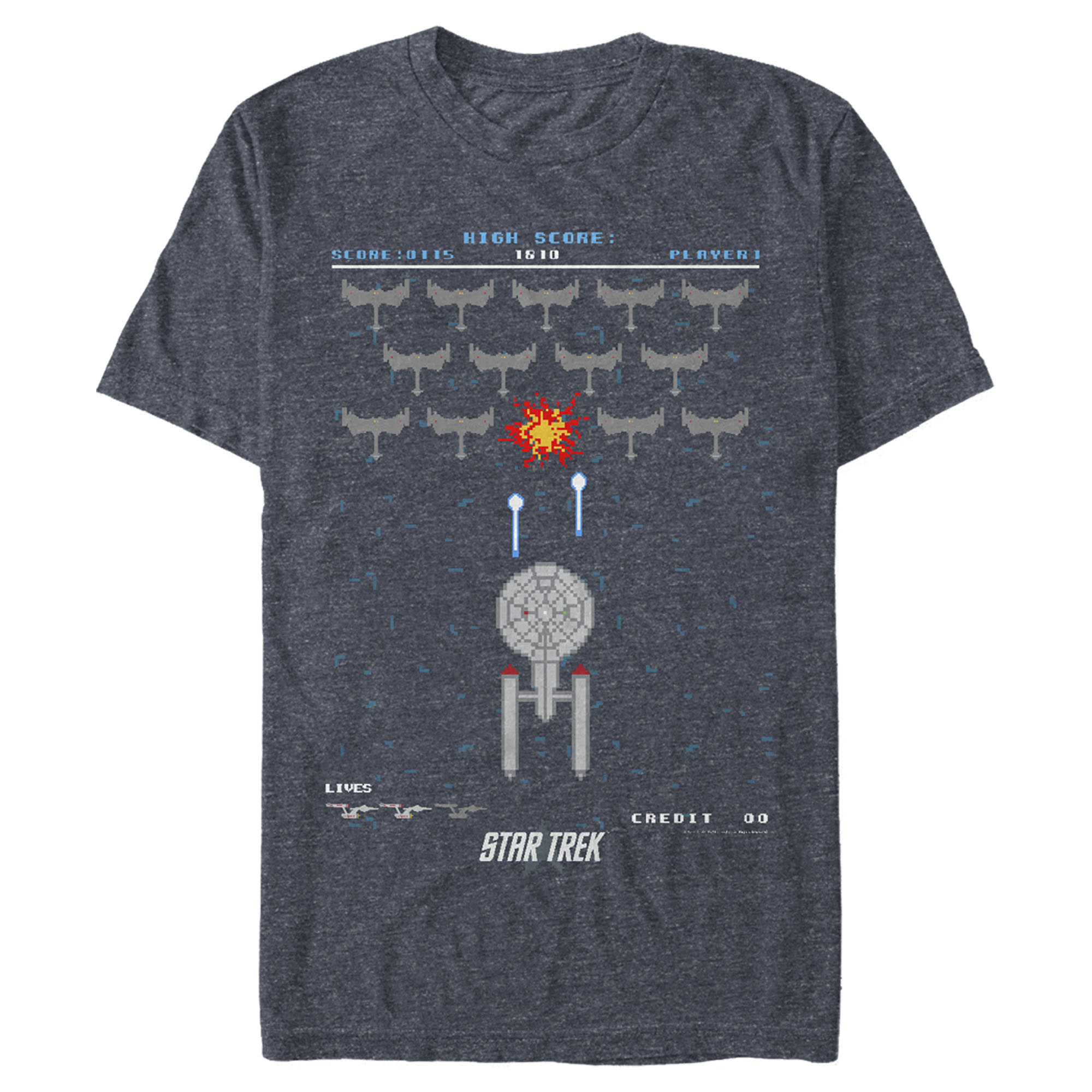 Men's Star Trek Enterprise Pixel Video Game Battle Adult T-Shirt