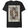 Keep a card up your sleeve and increase your bounty hunter cred with the Star Wars Boba Fett Playing Card Black T-Shirt. A lightly distressed print on the front of this unique black Boba Fett t-shirt features a playing card with Boba Fett in his famous Mandalorian armor.
