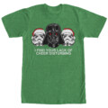 That's not Santa you hear in the sky, it's a TIE fighter carrying the Star Wars Christmas Empire Lack of Cheer Heather Kelly Green T-Shirt! Darth Vader's helmet sits next to two stormtrooper helmets with Santa hats and the phrase "I Find Your Lack of Cheer Disturbing" printed on the front of this funny green Star Wars Christmas shirt.