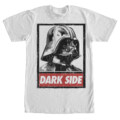 Darth Vader lends his iconic image to the Star Wars Dark Side Poster White T-Shirt. This durable graphic white shirt features a poster-style print of Darth Vader that reads "Dark Side" because this Sith lord is the poster child for the dark side of the force.