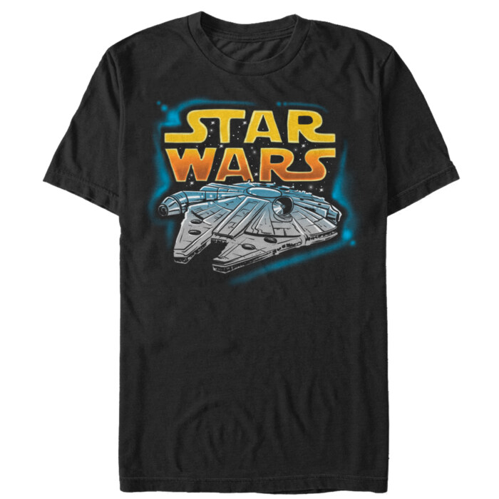 View all Millennium Falcon T-Shirt Collection and more same products Men's Star Wars Millennium Falcon Corellian Engineering Adult T-Shirt, Men's Star Wars The Force Awakens Millennium Falcon Outline Adult T-Shirt, Men's Star Wars The Last Jedi Millennium Falcon Battle Adult T-Shirt