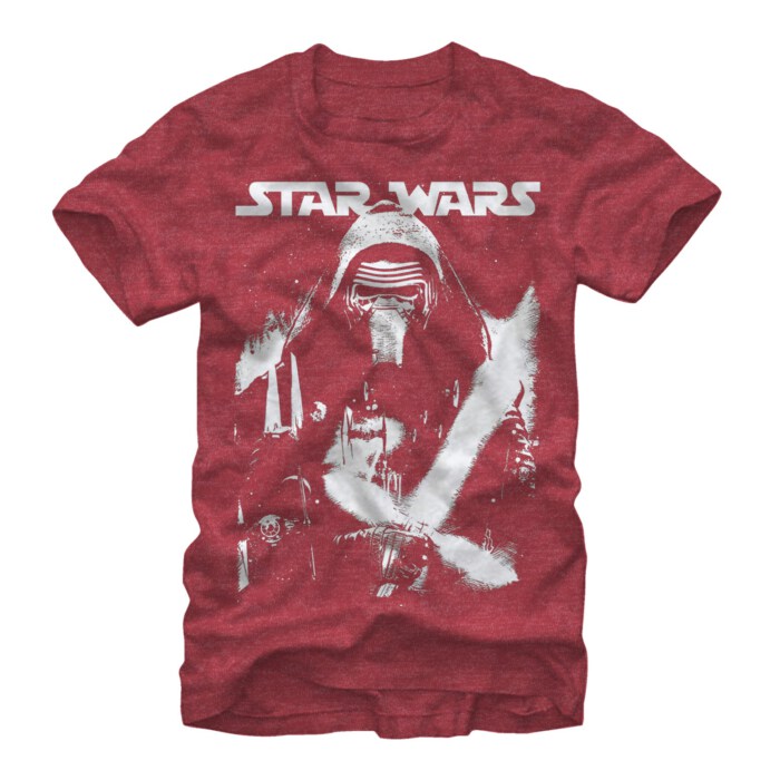 Look right into the face of an epic villain with the Star Wars Kylo Ren Stare Down Heather Red T-Shirt. A white print on the front of this awesome Episode VII shirt features Kylo Ren staring intently forward beneath the Star Wars logo.