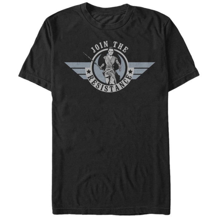 Leave Jakku behind for a future with the Force and the Star Wars Rey Join the Resistance Black T-Shirt. Rey runs with her staff next to the text "Join the Resistance" printed on the front of this awesome Star Wars Episode 7 Rey T-shirt.