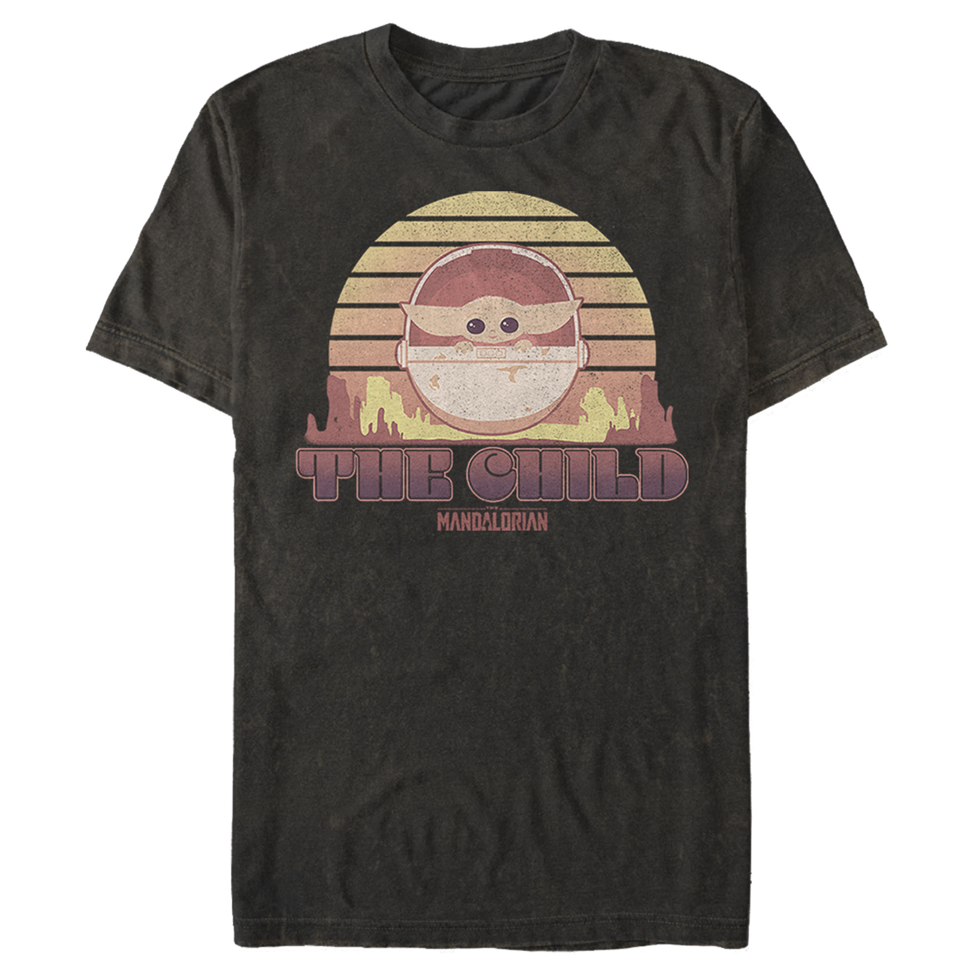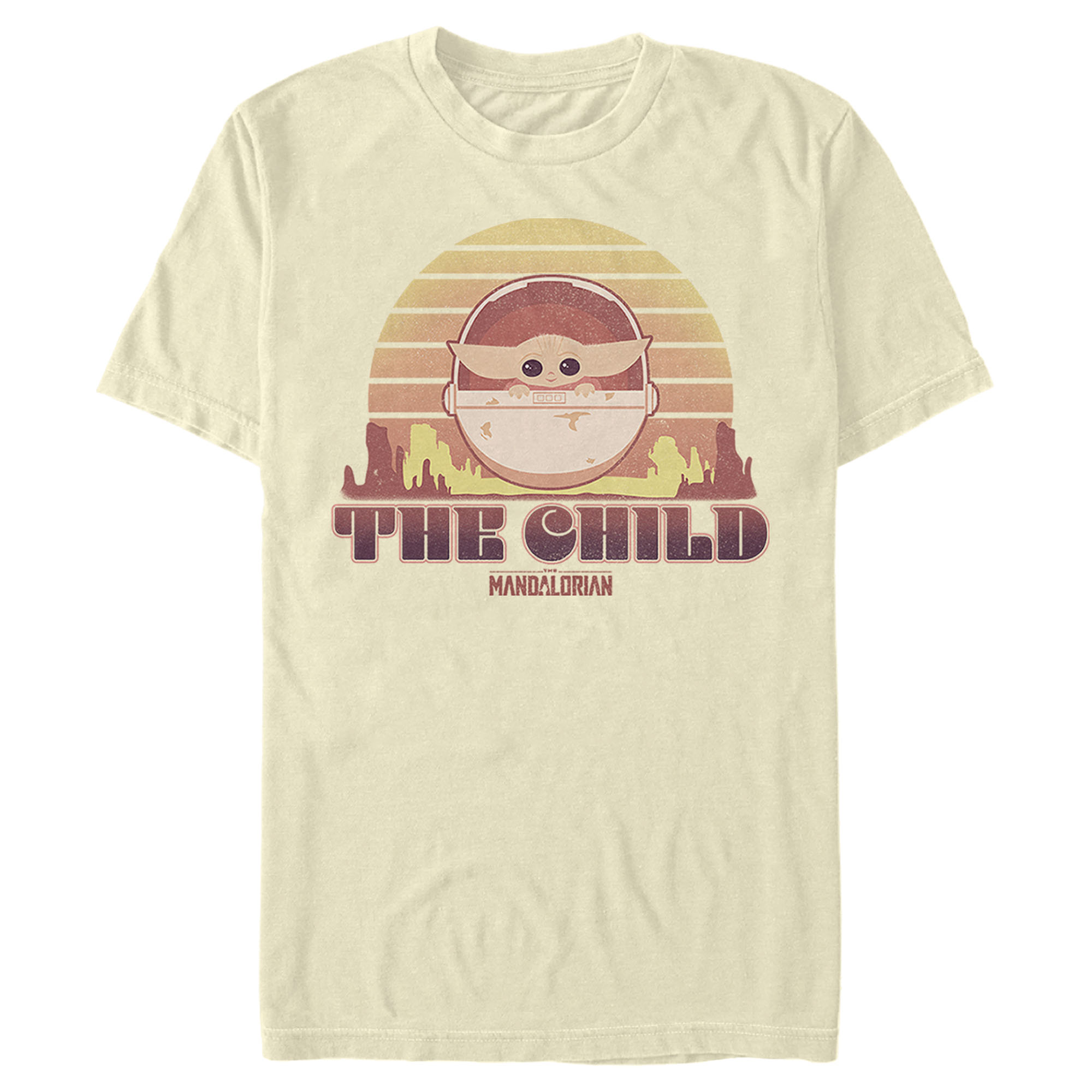 Men's Star Wars: The Mandalorian The Child Cartoon Retro Sunset Adult T-Shirt
