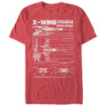 Learn more about the starfighters that destroyed the Death Star with the Star Wars X-Wing Schematics Heather Red T-Shirt. All the details of an X-wing are printed on the front of this durable red graphic tee.