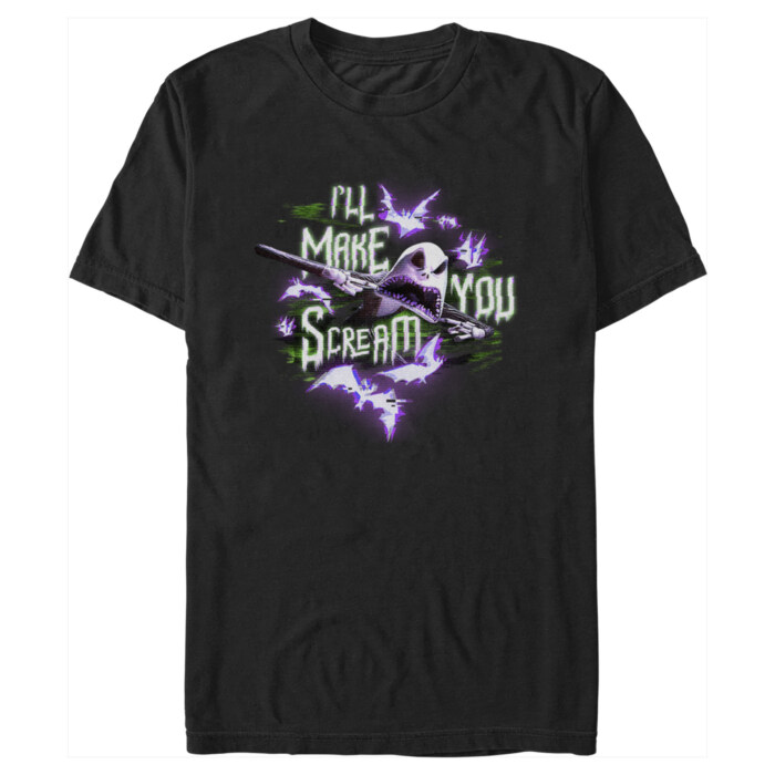 Make your way down to Halloweentown for some frighteningly good times with the Pumpkin King of Halloweentown himself, Jack Skellington, with spooky new officially licensed apparel for the whole family from Disney's beloved film The Nightmare Before Christmas! This Men's Jack I'll Make You Scream Graphic T-Shirt features Jack ready to frighten people with his scary face along with purple bats and the text "I'll Make You Scream" in glitch font. Grab one of these new styles today and represent your favorite Disney movie!