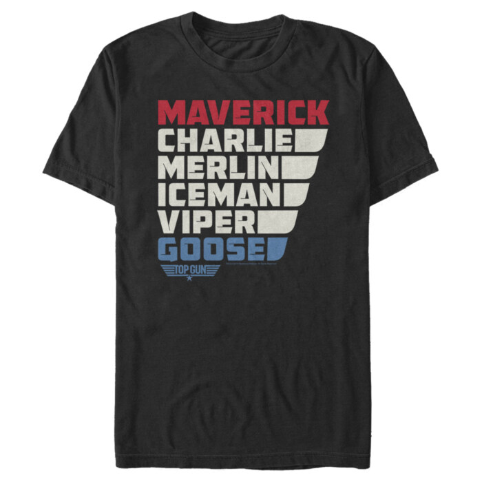 Do you have what it takes to claim the Top Gun Trophy? Then suit up and get ready to join the most elite Navy pilots around like Maverick and Iceman with this officially licensed Top Gun Character Name Stack Men's Tee! Dress in style and rep your favorite aviator movie with this design that features the code names of your favorite characters from Top Gun!