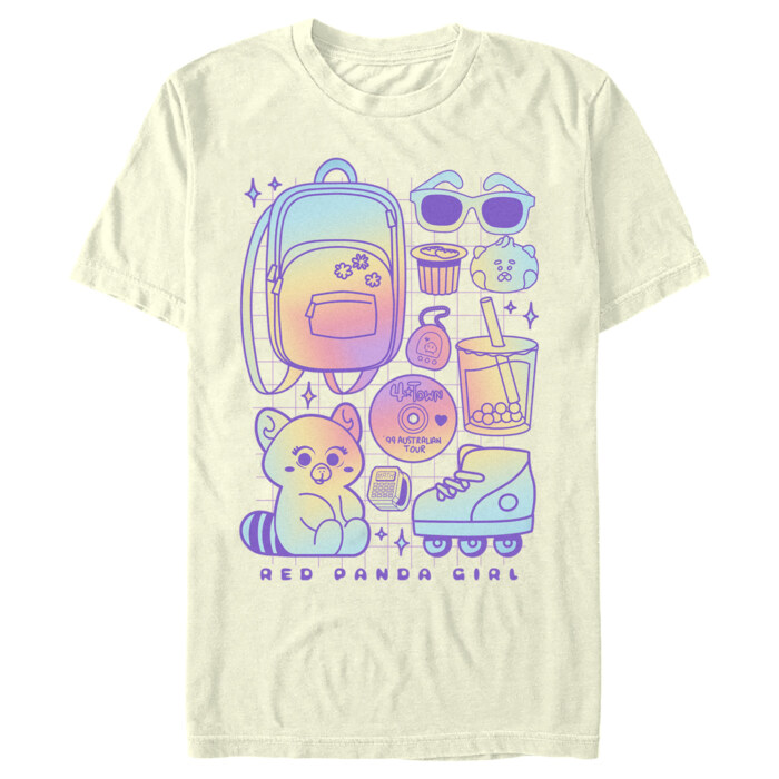 Mei Lee is a 13-year-old girl who is struggling with balancing friends and school and being an obedient daughter, if that weren't enough, she turns into a big red panda when she gets too excited! Join in on all the fun with this officially licensed Men's Red Panda Girl Mei Lee Tee from Turning Red on Disney+! This tee features cute cartoon graphics of Mei Lee, a backpack, sunglasses, roller skates, and more!