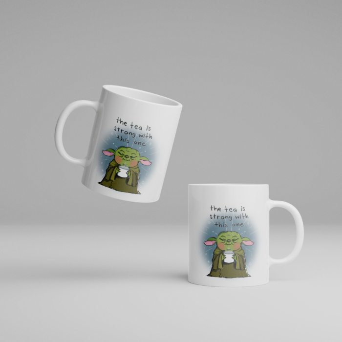 • Design: Cute Grogu art with the quote "The tea is strong with this one"